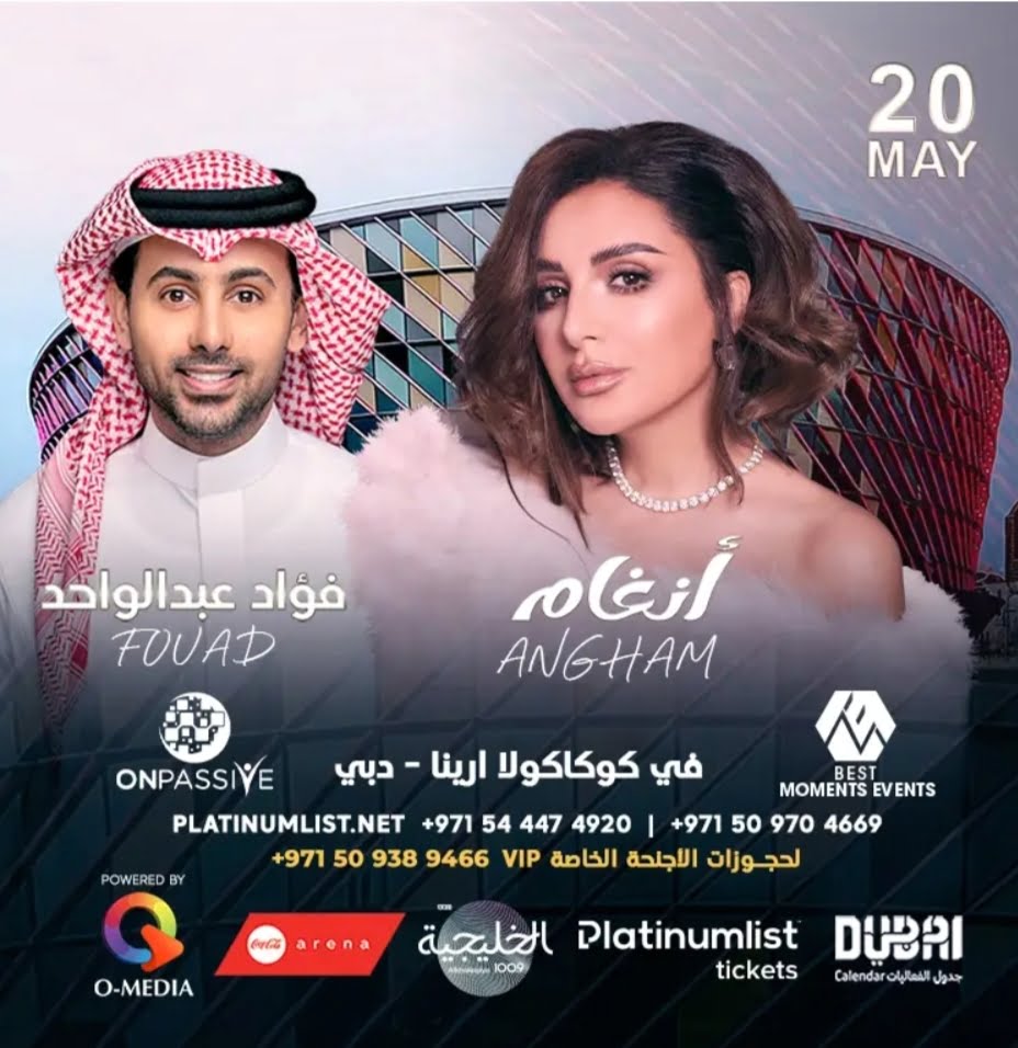 ينتظر الجمهور العريق للفنانة أنغام والفنان فؤاد عبد الواحد حفلهما الجديد معًا في كوكا كولا أرينا بدولة دبي في شهر مايو الجاري.